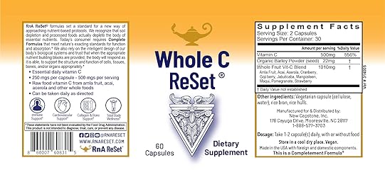 RnA ReSet Whole C Reset – Vita-C Fruit Blend with Bioflavonoids & Polyphenols, Organic Vitamin C Complex, Immune Support (60 Capsules)