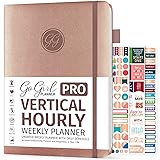 GoGirl Planner PRO Schedule - Undated Planner with Hourly Time Slots, Monthly, Weekly & Daily Organizer, Appointment Book for time Management, 7"x10" Hardcover, Lasts 1 Year - Rose Gold