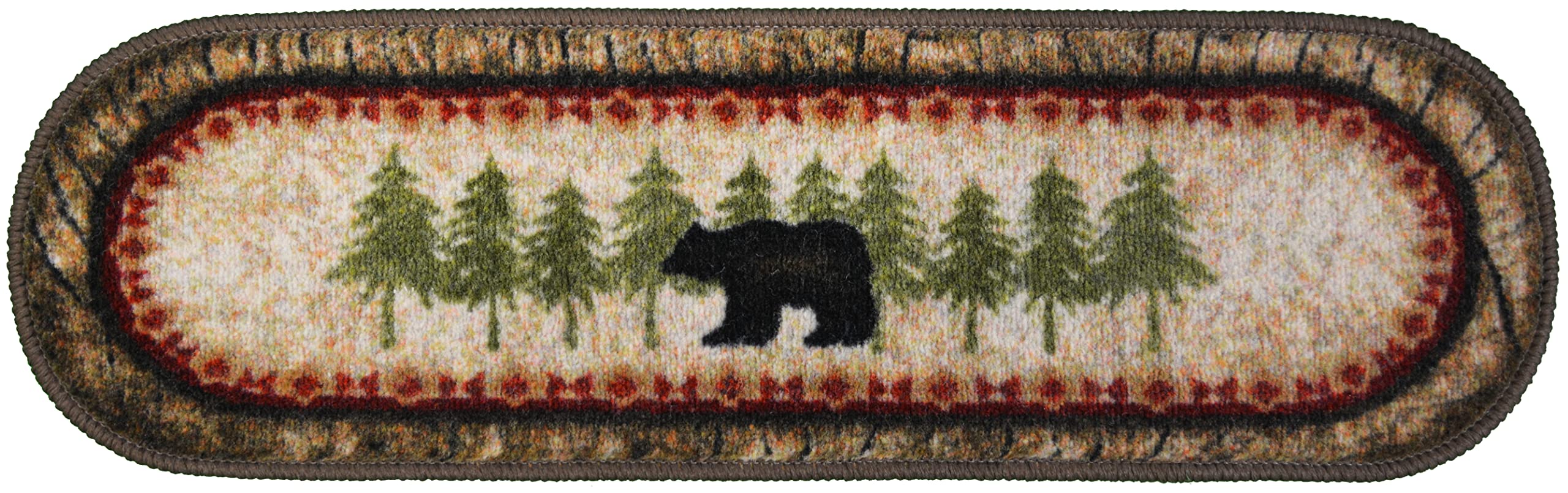 - The Cozy Cabin Collection by Mayberry Rug is the perfect accent piece to your cabin in the woods or home. It is made of premium DuraFiber Nylon Yarn that is fade and stain resistant. It features a non skid rubber backing to keep your rug in it's place. This quaility is also 100% machine washable. This bear design features a beautiful rustic border encircling a bear.