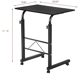 Binrrio Sofa Side Table with Wheels, Removable Laptop Computer Desk, Height Adjustable Rolling Coffee Snack Table, Sofa Side Desk for Living Room, Bedroom, The Study, 23.6" L X 15.7" W Black