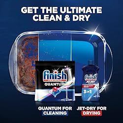 NEW AND IMPROVED Finish Quantum with Activblu Technology gives you the next level of clean (improved formula vs. previous Finish Quantum) so there is no need to pre-rinse or pre-soak. TACKLES BAKED ON, BURNT ON, AND DRIED ON FOOD even in short cycles 3 SEPARATE FAST DISSOLVING CHAMBERS, delivering 3 different power actions! Finish Quantum scrubs, degreases, and shines POWDER: scrubbing power to break down and remove toughest stuck on food in one wash GEL: Grease cutting power handles even the toughest messes LIQUID Powerball: Filled with power actions that dry and deliver a finishing boost of shine