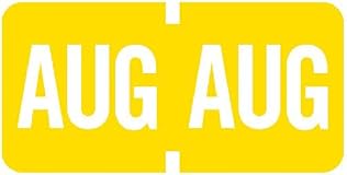 SERIES: Compatible with Tab Products Label, TMLV Series, 500 stickers/roll, Month: August (AUG) SELF-ADHESIVE: These premium quality yellow colored August month labels are printed with the letters AUG on them. They are highly durable and have a self-adhesive back, so they will not detach from your documents. WIDELY USED: These monthly chart labels are perfect for medical practices, healthcare facilities, doctor and physician offices, animal hospitals, veterinarians, automotive dealers, lawyers and anyone that wants to organize patient charts and filing systems. Month labels are a great option for those with limited filing space and want to rotate charts in and out of the active filing space available. These labels are very easy to use, just peel off dispensing box and stick on folder or chart. PACKAGING: Sold in rolls with 500 stickers/roll. Label size is 1/2" x 1" PERFECTLY ORGANIZED: Doctor Stuff is a leading supplier of folder supplies and filiing labels including alphabet, year, month, numbers, billing and collection, insurance and more. They have a clear laminate to keep your labels clean and the colors bright - even with frequent handling.