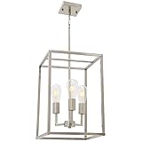 VINLUZ 3 Light Classic Indoor Chandelier Brushed Nickel Finish Foyer Lantern Pendant Lighting for Hallway Kitchen Dining Room