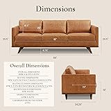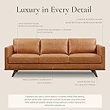 POLY & BARK Nolita 85” Leather Sofa – Full-Grain Italian Aniline Leather, Feather-Down Comfort, Solid Wood Base – Cognac Tan