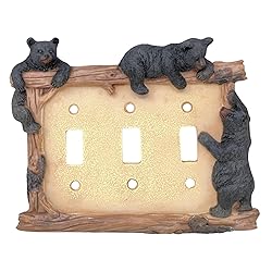 - Immerse yourself in the tranquility of nature with our captivating black bear switch cover. This meticulously crafted piece showcases three lifelike black bears, their fur rendered with exceptional detail, as they playfully climb a sturdy logs. The intricate textures and realistic portrayal of the bears bring a sense of wilderness into your home, transforming it into a serene woodland retreat. Crafted from durable polyresin, this switch cover is not only a visual masterpiece but also a practical addition to your home. Designed to fit standard 3-gang toggle switches, it seamlessly integrates into your existing decor. The accompanying log, meticulously sculpted to replicate the natural beauty of a forest floor, adds a rustic charm that complements various interior styles. Installing this switch cover is a breeze. Simply remove your existing switch plate and replace it with this decorative piece, securing it in place with the included screws. In moments, your home will be adorned with a unique and eye-catching addition that will spark conversations and evoke a sense of wonder. Whether you're a dedicated nature lover or simply seeking to infuse your home with a touch of the outdoors, our black bear switch cover is the perfect choice. Its captivating design, durable construction, and easy installation make it a must-have for anyone who appreciates the beauty of the natural world.
