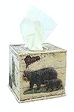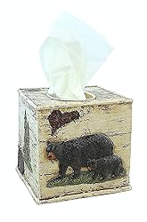 - Detailed Rustic Black Bear & Birch Square Tissue Box Cover Holder. Measures Approximately: 5.5" x 5.5" x 5.25" The perfect accent for lodge or cabin decor which brings nature in. Great Add on for Cabin / Lodge / Forest Style Home Decoration.