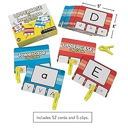Fun Express Uppercase & Lowercase Letter Clip Card Set - Fun Learning Activities for Kids - Laminated Cardstock, 5” x 4” - Perfect for Early Education - 57-Pieces