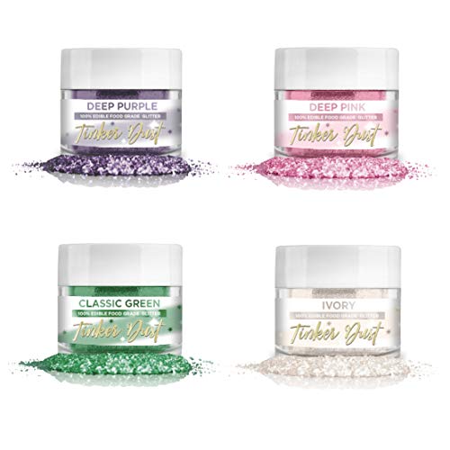 BAKELL Flower Passion Tinker Dust Edible Glitter, 5g Jar Color Set | Includes our beautiful Deep Pink, Deep Purple, Ivory & Leaf Green | KOSHER Certified | 100% Edible Glitter