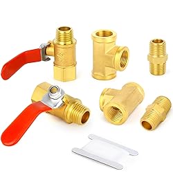 - DIRECTIONS FOR USE: NPT threads for connecting to female threaded pipes, this premium brass pipe fitting can be used to connect various pipes, such as air pipe, fuel pipe, water pipe as well as air tools; it can also be used with grease, fuels, LP and natural gas, refrigeration, instrumentation and hydraulic systems in low and medium pressure pipe line connections Features: 1. Male and female Pipe Taper (NPT) threads for connecting to Female threaded pipes 2. Heavy duty solid brass has strong corrosion resistance, thicker wall extends the service time. 3. Precisely milled, threads are tighter and deeper, not easy to slip, smooth threads will reduce the resistance during installation, saving time and improving efficiency. 4. Premium brass can withstand up to 100 °C (212 °F). Package includes: 2PCS 1/4" NPT Ball Valve 2PCS 1/4" NPT Tee Fitting 2PCS 1/4" NPT Male Nipple Tips: For better sealing, we suggest that all fittings must be used with teflon tape.