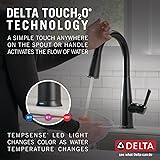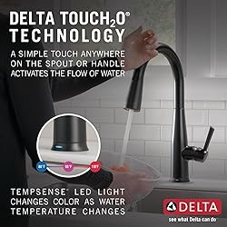 - Delta® VoiceIQ™ Technology pairs with your connected home device to give you exactly the amount of water you need with features like metered dispensing and custom container commands. Simply ask your faucet to dispense one cup, six ounces, a gallon or just about any other amount you could need. Custom container commands make everyday tasks easier, like filling a coffee pot or dog bowl, while thoughtful features like water warm-up and voice-activated on/off lend a hand when yours are full. Take command of your kitchen with a VoiceIQ™ Faucet: a revolutionary kitchen faucet that thinks on demand. This Essa pull-down kitchen faucet is packed with functional features, like Delta Touch2O® Technology. A simple touch anywhere on the spout or handle with your wrist or forearm activates the flow of water at the temperature where your handle is set. The Delta TempSense™ LED light changes color to alert you to the water’s temperature and eliminates any possible surprises or discomfort. Kitchen sink faucets with Touch-Clean® Spray Holes allow you to easily wipe away calcium and lime build-up with the touch of a finger. Delta® kitchen faucets with DIAMOND™ Seal Technology perform like new for life with a patented design which reduces leak points, is less hassle to install and lasts twice as long as the industry standard*. Kitchen sink faucets with Touch-Clean® Spray Holes allow you to easily wipe away calcium and lime build-up with the touch of a finger. You can install with confidence, knowing that Delta kitchen faucets are backed by our Lifetime Limited Warranty. Electronic parts are backed by our 5-year electronic parts warranty. *Industry standard is based on ASME A112.18.1 of 500,000 cycles.