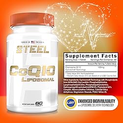 POWERFUL ANTIOXIDANT: Support your body's cellular health and maximize protection from oxidative damage with CoQ10 Liposomal. This means your heart, lungs, and all essential tissues will receive the support they need, at the full intended dose ENHANCED ENERGY PRODUCTION: CoQ10 plays a primary role in the production of energy in the body. Taking this supplement helps to increase natural CoQ 10 levels that can be depleted due to age , stress and cholesterol-lowering medications INCREASED ABSORPTION: Most CoQ10 supplements are destroyed in your gut and have extremely poor absorption. CQ10 Liposomal encapsulates Q10 in lipid molecular structures that allow it to bypass your stomach, driving higher bioavailability and absorption IMMUNITY AT CELLULAR LEVEL: CoQ10 is an essential compound that helps your body fight disease and damage on a cellular level, and is a key contributor in heart and lung health 100% SATISFACTION GUARANTEED: Steel produces certified and safe supplement products because your satisfaction is our foremost priority