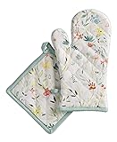 - About the Product: This Maison d’ Hermine Colmar kitchen bundle set brings lovely charm to your home décor with comfortable cotton products that provide a light but cozy feel that’s perfect throughout the year. Beautiful hand painting captures the essence of the original design, while the 100% cotton offers a wonderful drape, soft feel and polished charm making our products a great choice to entertain family and friends for all occasions. About the Collection : This delicate collection is inspired by the beautiful town of Colmar, in the Northeast of France - also known as 'Little Venice. With its ancient houses and flower decked town centre, this land of wines is idyllic. The 'Colmar' collection for 'Maison d' Hermine' captures the essence of this picturesque place with its dainty flower prints that glide on white cotton fabric. About the Brand: Maison d’ Hermine is a one-stop destination for people wanting a well-curated collection of charming and sophisticated table & kitchen linen.Designed to add an authentic European touch to your home, each collection is a work in art itself with intriguing details, artistic patterns, wonderful textures and rich colors. From modern themes to timeless classics each design is meticulously hand painted in water color and then expertly crafted down to the last detail on fabric with print. We pride ourselves on the stylish and practical choices we offer which are devoted to bring you products that inject color and character to your home.