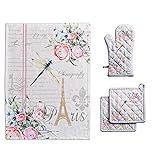 Maison d' Hermine Champ De Mars Bundle Set 100% Cotton Set of 2 Kitchen Towels (20 Inch by 27.5 Inch) Oven Mitt (7.5 Inch by 13 Inch and Set of 2 Pot Holders (8 Inch by 8 Inch)