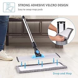 HUMANIZED DESIGN, BETTER EXPERIENCE - MANGOTIME Newest Floor Mop features with flexible 360 degree swivel mop head for easy cleaning under furniture, cabinets and in other hard-to-reach areas. And the mop handle is long up to 137 cm/ 54 in. So you can clean the wall or ceiling effortlessly, and needn’t bend over while cleaning the floor, which effectively relief your fatigue and back pain and bring you a better using experience. TWO KINDS OF PADS FOR DRY/WET USE - It comes with 2 microfiber cleaning pads for wet cleaning and 2 chenille mop pads for dry cleaning, so the flat mop can be used as a dust mop as well as a wet mop. These replacement pads are machine washable and reusable. You can reuse the pads and save your money on unnecessary disposable replacement pads. Every time you finish the cleaning work, just throw the pads into the washing machine. UPGRADED ULTRA ABSORBENT CHENILLE PAD - The newest chenille pad is extraordinarily absorbent. It can easily pick up and hold dirt, dust, pet hair, crumbs, etc. Ideal wood floor mop for the pet owners and families with kids. Use the chenille mop pad to attract dirt, or further clean the floor after the wet cleaning to make the floor dry more quickly. Suitable for different types of hard floor such as hardwood floor, laminate, vinyl, ceramic, tile floors, etc. IMPROVED HIGH QUALITY FLOOR MOP - The floor mop handle is made of high quality stainless steel which withstands friction and frequent use. The mop head is made of wear-resistant aluminum, more durable and long-lasting than the plastic mop head. Aluminum plate is heavier than plastic one, so there’s more pressure while using the hardwood floor mop and the dry mop head won’t turn over easily. Velcro design makes the pad easier to attach and replace. IDEAL VERSATILE FLOOR MOP - The 41 cm wide mop head makes the cleaning faster. It will save half of the time than the traditional mop. Our dust mops for floors can be used on different types of hard floors, suitable for cleaning the kitchen, home, bedroom, bathroom, living room, office and other places. Try this microfiber mop, say goodbye to back pain, and make your floor gleaming. Package included: 1 floor mop, 1 scraper (clean the pad), 2 chenille pad, 2 microfiber pads.