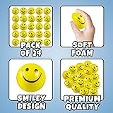 Smile Face Squeeze Balls (24 Pcs Bulk) for Kids and Adults, 2 Inch Mini Yellow Fun Happy Face Stress Anxiety Relief Balls, Hand Therapy Sensory Fidget Toy, Classrooms, Game Prize, Party Favor Gift