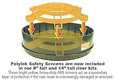 This kit includes a 24" adapter ring, a 24"x12" riser, 24" riser cover, 24" safety screen, an adapter ring installation kit, and stainless steel screws Additional 24" Polylok risers can be purchased and stacked on to this kit This package gives you approximately 14" in height Optional foam gasket sold separately NOTE: Adapter Ring now manufactured in black. Green or black may be shipped until green stock runs out. Color cannot be selected.