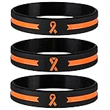 Pack of 3 Orange Cancer & Cause Awareness Ribbon Bracelets, Gift for Patients, Survivors, Family and Friends. Awareness ribbons are short pieces of colored ribbon folded into a loop as a way for people to support a cause such as disorder, cancer or disease. Use these wristbands to raise awareness for your cause, for non-profit fundraising campaigns and event giveaways, and for everyday wear. The Orange colored awareness ribbon represents a variety of causes, including: ADHD, COPD, kidney cancer awareness, lupus, leukemia awareness, multiple sclerosis, spinal cancer awareness, cultural diversity, autoinflammatory disorders, self injury awareness day, malnutrition awareness, and more. Standard unisex adult size of 8 inches around fits most adult wrist sizes, including men, women, and teens. Hypoallergenic and Latex free. Gentle to skin in both dry or wet condition. Use it not just on your wrist, but on water bottle, key chain and many other places.