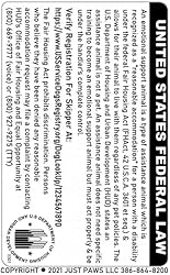 - CARD FEATURES Fully Customizable – Each ID contains the animal and handler information provided during registration. Registration is included. ID Carrier – A rugged vertical ID badge holder, made of heavy-duty PVC and offers clear visibility to both sides of the ID badge, protecting it from everyday elements is supplied with each ID. Perfect to attach to a dog's collar, vest's and harness D-ring, carrier, key chain, pocket loop, or bag. 30 Mil PVC Card – The full-sized ID card is the same size (2-1/8″ x 3-3/8″ or 54 mm x 86 mm) and thickness (.03”) of a standard credit card. The cards are extremely flexible and will not break under rigorous use. High-Definition Printing – Image & text are imprinted into the surface of the PVC card (sublimated) won’t delaminate over time! We use the latest high-definition ID card printers.at 600 dpi. Full Color – Each card is printed in full color on the front side and black and white on the reverse side, as shown in the product photos. High-Quality Materials – Each ID card is made from composite PVC plastic, is the same size and have the same durability as a typical bank-issued credit card. They are completely waterproof and will not delaminate over time. Made in the USA – Our ID Cards are USA manufactured in Florida by fellow Working Animal Handlers, just like you. We are available to assist you with the information needed and the products you require for your animal. Misrepresentation: US Service Dogs Registry and/or Just Paws LLC is not responsible for any misrepresentation by any customer of the identification products sold. As per ADA laws and the Fair Housing Act (FHAct) working animals and/or their handlers are not required to have an identification card. However, research shows handlers who carry working animal ID cards experience less confrontation by employees of establishments or entities than those who don't.