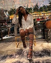LISHAN Womens Gladiator Knee High Sandals Open Toe Lace Up Criss Cross Strappy Stiletto Heels