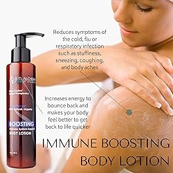 - Ughh, you feel it. The exhaustion, headache, body aches followed by sneezing and coughing or something worse starting to settle in. You've got a million things to do and now your body is denying your ambitions and you are or will soon be feeling ill from a cold, respiratory discomfort, or some other imbalance wearing down your immunity. Boost immunity, soothe your symptoms and bounce back quickly with immune boosting, nourishing and calming herbal extracts and essential oils in our Immune Boosting Body Lotion. So you can feel better and be healthier in no time.