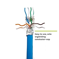 [Reliable Performance] Supports up to 10 Gigabit Ethernet over 328 ft. Bandwidth tested up to 600MHz. Compatible with 23-26AWG solid copper conductors. Supports PoE/PoE+/PoE++ (IEEE 802.3af/at/bt) 4PPoE up to 100W. [Quality Guaranteed] Durable metal housing. Self-adjusting spring in the strain relief neck keeps the cable shield in contact for resilient grounding. Integrated full-circumference strain relief neck protects terminations from conductor stress. [Versatile] Fits any RJ45 8P8C female Ethernet port and is compatible with shielded (F/UTP) and unshielded (U/UTP) Ethernet cables. Fully backward compatible with Cat5e and Cat6 cables. [Easy to use] Toolless, self-terminating design with a 90-degree snap-shut cap. Color-coded holder for T568A/B wiring allows for smooth installation, no punch-down tool needed. Integrated anti-disconnect slide lock prevents accidental disconnections. [✓ Field Tested, Customer Approved] ANSI/TIA 568.2-E certified by trueCABLE, ISO/IEC, CE & UL Listed, and TAA compliant. Trusted in the real world by real installers.