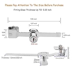 FITTING SIZE - XIEHE Glass Cabinet Door Locks fit the glass thickness of 0.12inch to 0.32 inch. NOTES, Maybe the size will have an error for 0.04-0inch, and keys are different, please pay attention to the size before purchase. Safety - XIEHE Locks for glass display case, are made of Zinc alloy, chrome finish in longer service life. To increase security-CNC brass key with up to 1024 key differences. Not easy to break the lock by tools. Also the folding keys are portable and made of brass material which is anti-corrosion. EASY INSTALLATION - XIEHE Sliding Glass Door Locks are easy to install, slips on edge of glass door would be ok, no boring required. They do not scratch glass in installation when using the crews and cushioning, which are following with the locks of sliding glass door. These Glass Display Case Locks are your perfect choice for business or home applications. Application - As XIEHE sliding glass door lock, sliding cabient lock,jewelry case lock, sliding closet door lock, glass display case lock, security glass case lock, trophy case lock, showcase lock, ratchet lock and retail case lock, it plays an important role in any retail store with display cases or single glass doors. Occasion - No matter at home or office, for increasing security of sliding glass doors, as showcase lock, trophy case lock, glass display case lock, this sliding door ratchet lock is your perfect choice! And if you have any problem with the installation or any suggestion on XIEHE sliding glass door lock, please send message to us, We will reply as soon as possible within support 7 days a week.