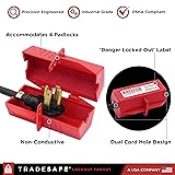 TRADESAFE Plug Lock for Lockout Tagout - 220 Volt Power Cord Lockout, Large Electrical Plug Lock, Industrial Grade Electrical Plug Lockout Device, OSHA Compliant Red