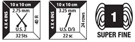 Content: 75% washable wool, 25% nylon Ball Size: 50 g/1.75 oz, 152 m/166 yds Care: Machine wash and dry Use for: Knit and crochet socks, gloves, and fine garments Gauge: 1 – Super Fine Knitting Gauge: 32 sts and 40 rows with a 2.75 mm (U.S. 2) knitting needle; Crochet Gauge: 22 sc and 24 rows with a 3.25 mm (U.S. D/3) crochet hook