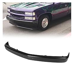 Front bumper face bar is a primed & ready for paint front bumper Material: Steel. Color: Unfinished. Primary Color: Black. Surface Finish: Primered Placement on Vehicle: Front. Replacement for GM1002168 ,15607509, 11744577, 615343335438 Fitment: Compatible with 1988 - 1998 Chevy Silverado & GMC Sierra C1500 C2500 C3500 K1500 K2500 K3500; Compatible with 1995 - 1999 Suburban C2500 K1500 K2500/Tahoe Escalade C/K 1500 2500 3500/Yukon. 1999-2000 Cadillac Escalade Base. WITH Holes For License Plate NOTE:The product is easy to be damaged, so we added a bubble bag in the package to prevent the product from being damaged
