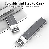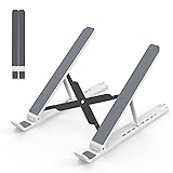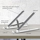 【Adjustable & Ergonomic】:The laptop holder elevates your notebook from 2.78” to 6.5” height (7 level height) for a perfect eye level, letting you fix posture and reduce your neck fatigue, back pain and eye strain. Very comfortable for working in home, office and outdoor. 【Sturdy & Protective】:The triangle support design make the laptop stand more stable. The large anti-slip silicone pad on the stand can secure your laptop in place and maximum protect your device from scratches and sliding. Moreover, smooth edges will never hurt your hands. 【Heat Dissipation】: The forward-tilt angle and open design offers greater ventilation and more airflow to cool your laptop during operation other than it just lays flat on the table. 【Portable & Foldable】:This portable laptop stand only weighs 0.53 pounds and can be quickly folded into a small size of 10.5” x 1.96” x 0.68”. Easy to carry anywhere. Ideal for people who travel for business a lot. 【Broad Compatibility】:Our laptop holder is compatible with all laptops from 10-15.6 inches, such as Dell XPS, HP, ASUS, Google Pixelbook, Lenovo ThinkPad, Acer, Chromebook and Microsoft Surface, etc.Be your ideal companion in Home, Office & Outdoor.