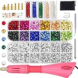Worthofbest Bedazzler Kit with Rhinestones Hotfix Applicator Tool with 3400 Pcs Hot Fix Rhinestones for Bedazzling, Clothes, Clothing, Fabric, Hotfix Bedazzle Crystals Gems Pen and Iron on Diamonds