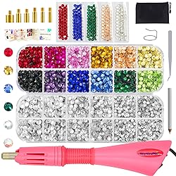 All-in-one starter kit: includes heat fix setter, 6 redesigned tips, 3400 Pcs glass hot-fix jewels in 3 sizes (3/4/5mm, SS10/16/20), tweezers, support stand, wax gem picker, user manual, all kept in a zipper bag Only for fabric and leather: When used with iron-on flatback rhinestones, the hot wand creates a permanent bond that is highly resistant to washing, ensuring the durability and longevity of the embellishments Easy to use: The bejeweled kit is designed for easy use. Color manual, how-to videos and 24x7 support are provided to help quickly get you started Professional-looking results: the hot gem setter is designed to provide professional-looking results, making it a valuable tool for crafters, designers, and DIY enthusiasts Note: This pink version is better for your own use due to its compact packaging. Suitable for 12-year-olds and up only