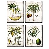 Palm Tree Decor - Tropical Wall Decor for Kitchen, Dining Room, Living Room - Beach House Wall Art - Vintage Rustic Boho Home Decoration or Gift for Women, Men - 8x10 Picture Sign Print Set