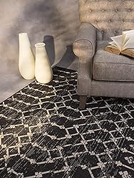 Outdoor Rug: Enhance the overall decor of your indoor and outdoor spaces with this contemporary carpet. It is the perfect addition to your living room, bed room, study area, patio or any guest hosting spaces. Tough Backing: Featuring a flat woven backing, this indoor floor carpet provides a plush underfoot. The non-shedding, non-slippery backing ensures maximum durability with minimal wear and tear. Contemporary Rug: This machine-made rug has a geometric trellis pattern that complements both modern and classic styled interiors. The soothing and eye-catchy colors are sure to elevate any indoor or outdoor space. Durably Weaved: The stain resistant polypropylene rug demands minimal care. Suitable for pets, this rug is not affected by water, spills and stains. Product Specifications: The flat woven area rug is available in Charcoal color with light neutral hues. It is 5 ft. 3 in. wide and 7 ft. 6 in. long