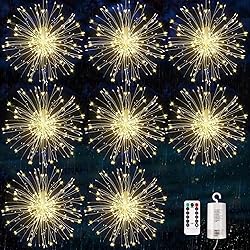 KIKILIVE Firework Lights, 8 Pack LED Copper Wire Fireworks Lights Fairy Lights Christmas Fireworks Hanging Dimmable String 8 Modes Waterproof with Remote Control for Christmas Wedding Garden