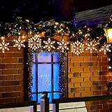 【 Christmas Icicle Lights with 6 Snowflake Drops 】- The Snowflake Christmas string lights are 9 feet long with 6 drops of cute snowflake-shaped bulbs that make an adorable addition to your porch or outdoor living space. 100 bright mini bulbs are included for 4 big snowflakes (9.5”) and 2 small snowflakes (5.5”), each of which is roughly 18 inches wide 【 Connectable Up to 5 Sets 】- You can connect up to 5 sets of these snowflake icicle string lights end to end, which is incredibly convenient for decorating broad areas or a sizeable outdoor object - such as your roofline or an oversized tree. Perfect for large-scale cascading lighting displays and festival decorations. 6-inch end cord with female connector for speedy connection 【 Steady and Dynamic Flashing Mode 】- One simple step makes steady lighting turn into dynamic flashing mode: replace one of any bulbs in the first and last 3 snowflakes respectively with the two spare red twinkle bulbs at the same time, plug in and enjoy the vivid lighting show 【 Wide Decorative Uses 】- Bulbs are removable and replaceable. And if one bulb burns out, the others stay lit. Two spare bulbs and one fuse for replacement are included to ensure steady and fantastic lighting. You will find them extremely bright and beautiful, lighting up your backyard, patio, roof, etc. Where there are snowflake curtain lights, there is a fantastic world 【 Mini Clips Included for Hanging 】 8 mini clips are included; installing these snowflake window lights with the gripper, cable tie, or cup hook is easy. Fix it or place it anywhere necessary. Hang it in the living room or window, weave it through flowers, shrubs and trees, string it along the wall or fences, or combine it with other Christmas ornaments
