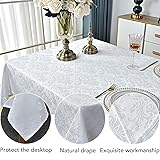 Rectangle Table Cloth - 60 x 84 Inch White Jacquard Tablecloths Damask Design Spillproof Wrinkle Resistant Shrinkproof Soft Tablecloth Polyester Oblong Table Cover for Kitchen Dinning Party Tabletop