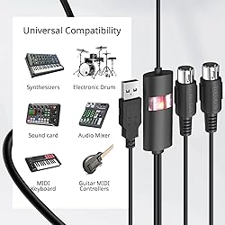 - The missing link between MIDI instruments and your computer The USB MIDI Cable makes it easy to connect any MIDI instrument to your Mac or PC via USB. The USB cable receives and outputs MIDI signal thanks to its internal interface. The USB-MIDI Cable connects plug-and-play to your Mac or PC for an all-in-one USB-MIDI solution. Instructions: 1.Connect the cable marked "In" to "Out" on MIDI keyboard, "Out" to "In" on MIDI keyboard. 2.Plug the USB into Laptop, PC, or MacOS 3. Open music software program 4. Let the music software program MIDI IN / OUT device to USB-Audio-Device 5. USB MIDI Interface is now ready for use. Plug and play, USB MIDI cable with built-in driver, no need to install the driver, just connect to the USB socket. Wide compatibility, standard 5-pin MIDI cable 16 in and out channel, compatible with most computer operating systems Incorporates anti-electromagnetic interference technology. High transmission speed, performance, and EMI resistance Specification:Instructions for Use:MIDI IN corresponds to the OUT of the cable and vice versa.Use the MIDI to USB cable with computers with compatible operating systems (WIN10 / 8/7 / Vista / XP and MAC OSX System)Open the music editing software program (eg Cubase, Sonar, MIDI Connections, etc.)Set the MIDI IN / OUT music software from device to USB-Audio-Device.The USB MIDI interface is now connected to the computer.Package Content:1x Midi to USB Cable Interface Converter - IN OUT Midi Cable Host Adapter Plug Controller Wire Cord For Keyboard Synthesizer Device to Mac Pc Computer Laptop iPad iPhone Music Studio (Black 6 FT)