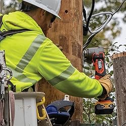Right angle impact wrench provides versatility for better reach around a utility pole with less effort Patent pending through hole design for longer bolts Delivers 300 ft-lb of max torque for installing fasteners into wood, metal and concrete Featuring 1-1/8-Inch, 1-Inch, 13/16-Inch and 3/4-Inch square drives 0 -1800 RPM variable speed trigger for better control Safety lockout switch Work light illuminates darker spaces