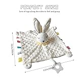 Upalupa Loveys for Babies Bunny Security Blanket with Silicone Teether Tags Unisex Lovie Gift for Infant and Toddler Snuggle Toy Stuffed Animal, White 11 inch