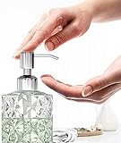 Premium Soap Dispenser - Made Of High-Quality Glass, natural and safe to fill with a variety of room-temperature daily use liquids. Anti-fingerprint, the Sturdy Pump Is Made By Premium 304 Stainless Steel Which Can Kept Long Lasting Bright That Not Easy Corrode Or Rust. Gorgeous Design - Diamond cut surface, stunning and anti-slip. Can be placed in any countertop, bathroom, kitchen, or office. Use it as an ornament to exemplify your unique taste as well. Value 2 Pack - Value 2 Pack Glass Soap Dispensers. Measuring 7” Height, 3” IN Diameter. Each Dispenser Pump Holds 12 Ounces Of Liquid Soap. Reusable and refillable, Eco-friendly green, money-saving. It is also a great gift idea for your family and friends. Fits Any Soap - Our soap dispenser can use for liquid soap, dish soap, lotion, aromatherapy essential oil blends, shampoo, body wash, hand soap, massage oils. You Can Use It as Kitchen Soap Dispenser Or Fill It With Lotion as a Modern And Practical Bathroom Decor. Quality Warranty - We do not only offer the top grade-A quality products but also provide 3 years warranty to get the money back or get a new one.