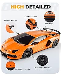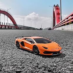 OFFICIALLY LICENSED BY LAMBO: 1/24 scaled back on the real Lambo Aventador SVJ; model Lambo measures in 7.3 x 3.6 x 1.9 inch; great size for inside use. We strongly stand behind each item it designs and sells. Each product we sell has passed a rigorous testing process before landing at your door. These remote control cars are wonderful gifts for kids FULLY FUNCTIONAL BEZGAR RC CAR :Features a delicate and smooth profile and a remote controller with functions such as forward, reverse, left and right turns; Easy to control and the Lambo RC car responds well. Lambo Aventador SVJ car simulates a really powerful engine as one can expect from a famous car. The simple dual-grip remote control and a max speed of 4 miles per hour are fun to play with STRONG MATERIAL AND SCRATCH RESISTANCE :Non-toxic ABS plastic and a glossy exterior, it can hold up well through lots of crashes. Smooth flexible wheels with clear patterns and an independent suspension system can reduce the friction between the tires and floor and bring the most active suspension, so it can freely run into around the house EXCELLENT PERFORMANCE :2.4GHZ frequency is the updated new feature for this RC car, which provides a stable and wider control range for the play, provides a range of up to 80ft & allows you to race at a speed up to 4mph. Requires 3 * AA Batteries for the car and 2 * AA Batteries for the remote controller; Package includes 1 * 1/24 remote control car,1 * dual-grip remote-controller, and 1 * user guide IDEAL REMOTE CONTROL LAMBO FOR BOYS/ADULTS :Round edges to protect children from getting an injury. The model Lambo Aventador SVJ works well on a smooth surface, suitable to play inside and outside. You not only play with it using the remote control but also place it as an exhibit on a display shelf. It is a good choice for you at various festivals