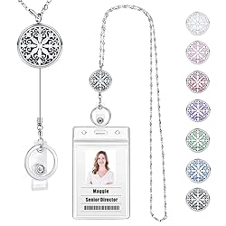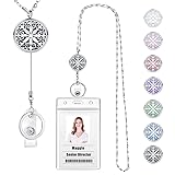 Retractable Lanyard: With a cute design of retractable lanyard, necklace and diffuser 3 in 1, this lanyard with ID holder is functional yet sophisticated and elegant looking. It looks like a stylish diffuser necklace but works like retractable lanyards for ID badges. These badge lanyards provide a practical way to display your work badge and keys. A badge reel retractable lanyard will make life more convenient if you have keys to unlock doors or a swipeable card for restricted entry. Lanyard Quality: Made from 316L stainless steel for long life, strong and sturdy but also LIGHTWEIGHT. It will not tarnish or turn colors. It is very practical to hold multiple badges, key cards, keys, Metro ticket and it is very easy to get on or off or rearrange. Perfect retractable lanyards for women who had to wear their ID badge at all times. Perfect Size and Aromatherapy: The 34-inch chain and 25-inch retractable wire cord are perfect for using the keys or badge and saves you much time as you don't have to take it off all the time. Meanwhile, it's also a simple but elegant essential oil necklace. You can keep your favorite essential oil close to you to keep relaxed during work. Change the bonus aromatherapy felt pads to match your outfits or mood, and make every day a fresh start! What You Get: This id badge holder with lanyard is beautifully packaged and ready for gift-giving. Include a stylish key lanyard, a pretty velvet bag, 2pcs plastic badge holders, 8pcs felt pads and a cute wish card. Thoughtful gifts for Teachers, nurses, employees, bosses, co-workers, students, and classmates on Birthday, Mothers Day, Valentines Day, Christmas Day, Graduation, Office parties, Back to school, and more.