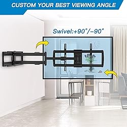 EASY INSTALLATION: This universal 75 inch TV wall mount can be installed on 16” - 24” wood studs and concrete or brick walls. Instruction manual, wall template and mounting hardware is included. The flat screen TV wall mount features cable management clips on the arm extension to help route and organize cables. 42" LONG EXTENSION TV MOUNT: This flexible long arm TV wall mount with 42.72” articulating extension arm allows you to view your TV from anywhere in your room. Features 90-degree swivel left and right, allowing you to direct the screen toward your viewing position. Excellent choice for mounting in a corner or in a recessed space. UNIVERSAL DESIGN: The full motion TV wall mount is designed to fit most 42”-90” LCD, LED, OLED 4K flat screen or curved TVs with VESA mounting patterns 200x100mm (8”x4”) - 800x400mm (24”x16”) and weight up to 150lbs. ENHANCE YOUR VIEWING EXPERIENCE: The wall mount TV bracket features tilt and level adjustments that allow you to tilt the TV up 5° or down 15° based on your position in the room. Reduce screen glare and increase comfort by customizing the viewing angle. The TV can also be leveled by +4°/-4° after installation. SAVE SPACE IN YOUR ROOM: Installing the PSXLF01 corner TV wall mount will allow you to bring the screen closer to you when viewing and collapse it against the wall when not in use. The TV wall mount can be retracted to 4.5" from the wall. You can also mount it in the corner to free up room for other furniture or decor, giving your home a more modern, sleek look and reducing clutter in the process.