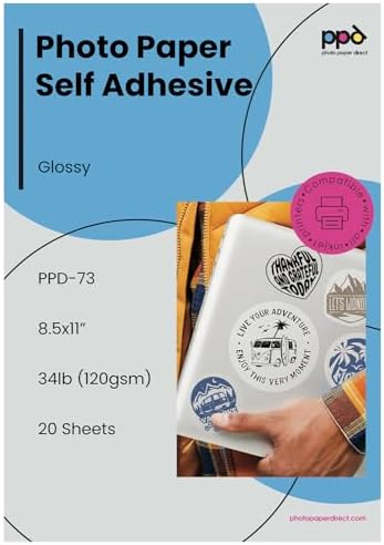 - A Practical Solution: This 20-pack of 8.5 x 11 inch printable sticker paper offers an affordable alternative without sacrificing functionality. While thinner than vinyl options this self adhesive sticker paper provides a glossy surface perfect for creating eye-catching stickers. Each full-page sheet is fully customizable, providing a generous surface area for your designs. Whether you're printing intricate designs or simple graphics, this printable sticker paper ensures sharp, vibrant prints.