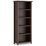 SIMPLIHOME Amherst Bookcase - 70 inch Tall 5-Shelf Solid Wood Bookshelf in Russet Brown, Transitional Storage for Living Room, Study Room or Office with Adjustable Shelves and Tapered Legs