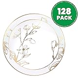 - Plasticpro 128 Piece Combo Plates Set includes 64 7'' inch Plates & 64 10'' inch Plates White Plastic Floral Design Party Plates With Gold Rim, Premium heavyweight Elegant, Disposable, Tableware, Dishes,