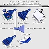 JZMYXA Aquarium Cleaning Tools Kit 5 in 1 Function for Long Deep Fish Tank, Including Algae Scrape, Cleaning Sponge, 3.9" Small Fishnet, Gravel Rake, Plant Fork