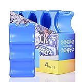 ★ GOOD AND DURABLE: Set of 4 reusable rigid ice packs,each one measures 8.1*3.9*1.8 inches and weights 600 g. Inside ice gel has premium formula and outside is made of food-grade HDPE plastic shell. Reusable, leak-proof and sturdy. It can be brought through TSA security checkpoints when fully frozen or otherwise stored in checked baggage. ★ Ingenious Contoured Design: The Stylish Double-Sided freezer pack has can-shaped contours can make the ice pack and the fresh-keeping product close to the distance. It can keep breast milk baby bottles and your favorite drinks in direct contact with the ice pack – cooling them quicker and longer. ★ EASY FOR USE AND LONG LASTING--Are you tired of cleaning melted ice water? Only need to be frozen at household refrigerator freezer (-10 degrees) for only 3 hours before used. The high performance ice gel inside can absorbs a massive amount of heat and keep cold longer. Formed to fit around breast milk bottle and also canned Soda & Beer. It can keep 6 cans/bottles cold for hours. Stays cold longer than ice with no mess after thawing. ★ SUPER VERSATILE: The long lasting freezer packs are ideal for cans, bottles, beverages and breast milk or anything you need to keep cool in the office, on picnics, road trips, outdoor camping or traveling! Perfect chillers for everyday use in coolers, breast milk bags, lunch boxes and insulated tote bags. ★ QUALITY GUARANTEED--Try the best ice packs available risk-free. You won't regret it. For any quality issues, shoot us an email and we'll fully refund you no questions asked.Rev.Lang offers a life-time new replacement, we'll fix it hassle-free!
