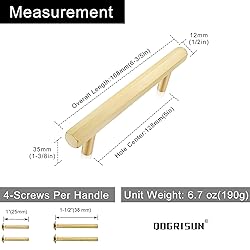 Durable Material - Made of high-quality solid brass with a brushed finish, these Cabinet Pulls are heavy-duty and durable, ensuring long-lasting use. Each pull weighs 6.7 ounce(190g), providing a solid and substantial feel. Modern Hexagon Design - The stylish hexagon bar design adds a modern touch to any cabinet or furniture piece, making it perfect for kitchens, bathrooms, living rooms, drawers, dressers, wardrobes, cupboards, or updating some old furniture. Perfect Dimensions - With a hole center of 5-Inch(128mm), overall length of 6-3/5-Inch(168mm), width of 1/2 inch (12mm), and projection of 1-3/8 inches (35mm). Two Screw Options - The package includes 1-inch and 1-1/2-inch screws, suitable for cabinet thickness of 11/16 - 1-3/8 inches. Machine screw metric size: 8-32. Additional screw lengths may be required depending on your cabinet's width. Complete the Look - To achieve a cohesive and stylish look, these Pulls can be paired with QOGRISUN brass hexagon knobs. We guarantee that the knobs will have the same color and finish as the pulls, allowing you to create a seamless and Beautiful Furniture Decoration.